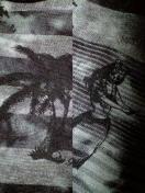 ピッチの違うボーダーデザインで全体にタイダイ染め、ロエンらしくスカルを取り入れたハワイアンプリント等凝ったデザイン。