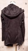 こちらは左右上部に留めボタンがあり閉めれば左右をクロスさせたフードドレープジャケットのように、開ければシルエットの綺麗なドレープカーディガンと使い勝手の良いモデルです。
