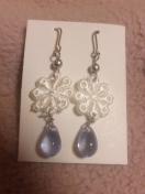白色お花モチーフと水色雫ビーズを合わせてピアスを作りました。