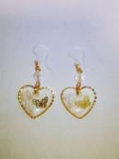 ■ゴールドハートチャームUVレジンラメ入り蝶々メタルパーツ・クリスタルオーロラスワロフスキー樹脂ピアス☆■