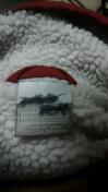 シンプルな赤(エンジ!?)一色のベンチコートになります。