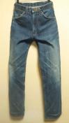 5ポケット、ジッパーフライ(TALONセミオート)、レギュラーストレート、革パッチ、バックはシンチベルト、ねじれ防止の為、綾の織目を崩したブロークンデニム仕様、アウトシームは青耳セルビッチです。