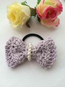 ラメ入りコットン糸でリボンを編んで、ヘアゴムを作りました。