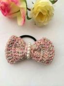 コットンミックス糸でリボンを編んで、ヘアゴムを作りました。