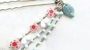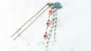 キャンディのような赤いビーズに真っ白なドロップビーズを組み合わせて、少しレトロな色合いに仕上げたかんざしです。