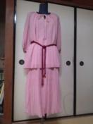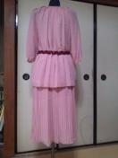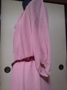 ピンクのツーピースです。袖は、七部丈です。サイズ