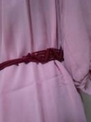 又、ピンクですが、少しくすんだ様なピンクです。写真の正面、胸元を移したものが一番近い色で、後の物は、光の加減で、ピンクが強く出ています。
