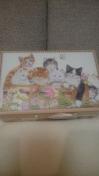 まずお先に当方喫煙者です。神経質な方、完璧をお求めの方はご遠慮下さいませ。モバペイお取引き、普通郵便発送をご希望の場合には特定記録付き普通郵便発送致します。(160円+で双方で配送状況確認可能です。当方とのお取引き経験がございます方はお知らせ下さいませ。当方出品では自己紹介欄、未記入の方は確実に削除致します。(場合によりブラリ登録も致します。) 評価に「悪い」が多数ございます方、評価をしない方も同様です。地元雑貨店購入品! ジュエリーBOX 猫 ネコ 厚紙製品BOX 全面的にネコのイラストがございます。(写真ではなくイラストです。) 新品、未使用品!全体のサイズ約18×11.5p 高さ約7p締切日時