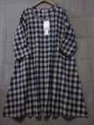 洗い晒しで着れるナチュラルコットン素材の格子チェック七分袖ワンピースです♪