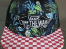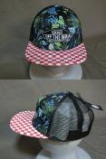 カラー 南国風ブラック系 柄 x ツバ赤白チェッカー柄