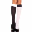 左右で黒と白の模様が互い違いになっている、個性的なデザインのニーハイストッキングです。