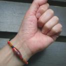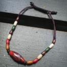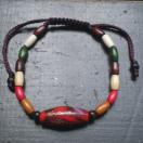 ボーンやウッド、ガラスのビーズを紐で編んでブレスレットに仕上げました。