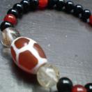 天珠は瑪瑙に特殊な加工で宗教的な模様を入れた石で、チベットでは古来よりお守りとされ身につけられております。