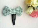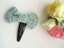 コットン糸でリボンを編んで、パッチンピンを作りました。