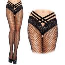 ベルベット素材のストラップが大人なデザインになっている網ストッキングです。