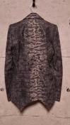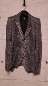 フェイクレイヤードジレやアシンメトリーデザイン等存在感抜群の総柄JKです。