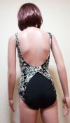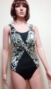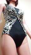 〓商品情報 きらAラメ入りプリントとkissレイヤードの心地よい素材の綺麗な水着です。 ブランド:ミューラン・スポーツウェア サイズ:9 素材:ポリエステル パット:あり 他:着用の少ないとても綺麗なお品です(used)。ホームクリーニング済み。