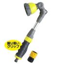 ◆一般のホースに繋ぐだけ!◆ 可変式ノズル 9種類の散水パターン 多用途ノズル ON/OFFスイッチ付き 水撒き/洗車 万能 ◇ 箱難/首振りウォーターノズル 黄色