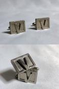 ヴェルサーチ 希少! 『 グレカ Vロゴ立体ヴィンテージスクエア カフリンクス 』☆