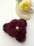 ウール100%で大きめ薔薇を編んで、ストールピンを作りました。