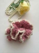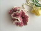 ウール100%の毛糸でボリュームたっぷりのシュシュを編みました。