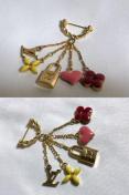 ルイヴィトン 激レア!! 「ブロッシュスウィートモノグラム LVロゴ 5連アイコンフリンジ ブローチ」★ カデナ エンブレムロゴ チャーム スイングオブジェデザイン ピンバッジ メンズ&レディース