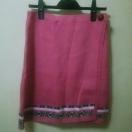 ★ウエストゴムで、左前でくるみボタンでとめる巻スカートです。画像2の上の方に小さなつれたような跡がありますが、裏にボタンが付いていますので、穴やキズではありません。未使用ですが、素人の自宅保管ですので、ご理解頂ける方のお取引、お願い致します。締切日時