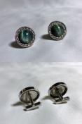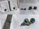 希少!『大粒グリーンマーブルストーン装飾 カフス ショートネクタイピン セット』☆