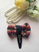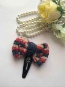 ウール100%の毛糸でリボンを編んで、パッチンピンを作りました。