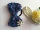 ウールミックス糸でリボンを編んで、ヘアゴムを作りました。