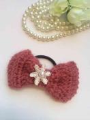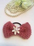 ウール100%の毛糸で薔薇を編んで、ヘアゴムを作りました。