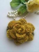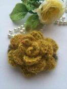 モヘア入り毛糸で薔薇を編んで、ブローチを作りました。
