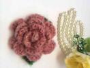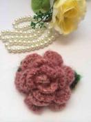 ふわふわふんわりモヘア入り毛糸で薔薇を編んで、ブローチを作りました。