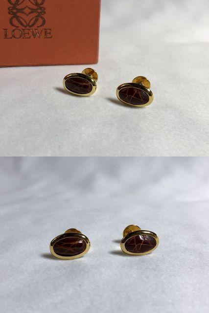 ロエベ 希少!! 「ヴィンテージ レザー装飾立体オーバルカフス」☆