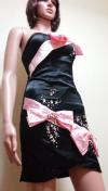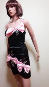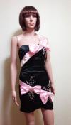 [商品情報] 沢山のデカリボンにビジュ盛りAの綺麗なOneショルドレスです。 ブランド:bing chuanliren 色:光沢ピンク×黒 サイズ:F 平置き⇒胸元幅35cm、脇下からの着丈65cm、裾幅41,5cm 素材:ポリエステル ストレッチ:あり 背ゴム:あり ファスナー:背 パット:あり 裏生地:あり 他:新品タグ付きです。