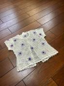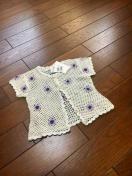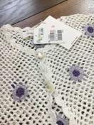 定価3900円。手編み風の上質な編み上げカーディガン、ところどころにパープルのフラワーが編み込まれ、とても清楚で上品なお品。