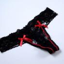 ブラックに赤いリボンが映える総レースタイプのセクシーなTバック(タンガ)です。