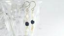 クリーム色の淡水パールに星空を閉じ込めたようなブルーゴールドストーンをあわせました。