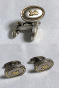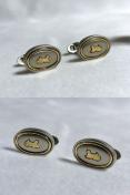 セリーヌ 希少! 「馬車ロゴ オーバルコンビカラー カフス ボタン」 ☆