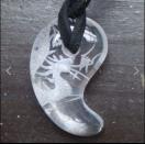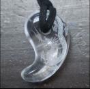 龍が手彫りされた水晶勾玉を皮紐に通し、ボーンビーズで長さの調整ができるようにしております。