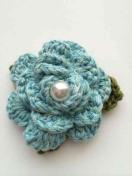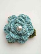 コットン100%の糸で大きめ薔薇を編んで、ストールピンを作りました。