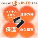マイナスイオン(トルマリン)、遠赤外線、保温、永久磁石の4つが、ぽっかぽかを作る!