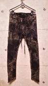 ジップを多用しムラに抜染したその上からカーキ色をのせた新しい加工による色合いがかっこいいパンツです。