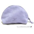 きらきらのラメ感&パステルカラーの可愛らしさと、厚手レザーで高級感も兼ね備えた半円型のポーチ。普段持ち歩く小さめの化粧ポーチとしてちょうど良いサイズです。