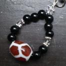 *亀甲長寿天珠*オニキスx水晶ストラップ