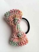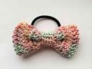 レース糸でリボンを編んで、ヘアゴムを作りました。