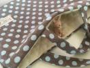 yuwaさんの綿麻生地、チョコ×ミントドット柄で、B5サイズがすっぽり入るトートバッグです