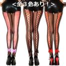 後ろ側がサテンのリボンで編み上げになっている大胆なセクシー網タイツです。