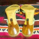 7万円 23.5cm グッチ GUCCI サンダル 中古 ブランド レディース 靴 水色 × 茶色 レザー 革 本革 パンプス締切日時