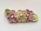 キラキラレース糸でお花を編んで、ブローチを作りました。